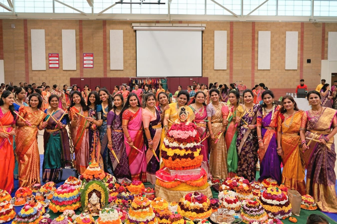 California: The Bathukamma festival was celebrated with grandeur in Dublin city under the auspices of the Telangana Development Forum (TDF-USA). Around a thousand Telangana-origin NRI women and their families participated in the event, arranging colorful Bathukammas and rejoicing with traditional songs and dances.
