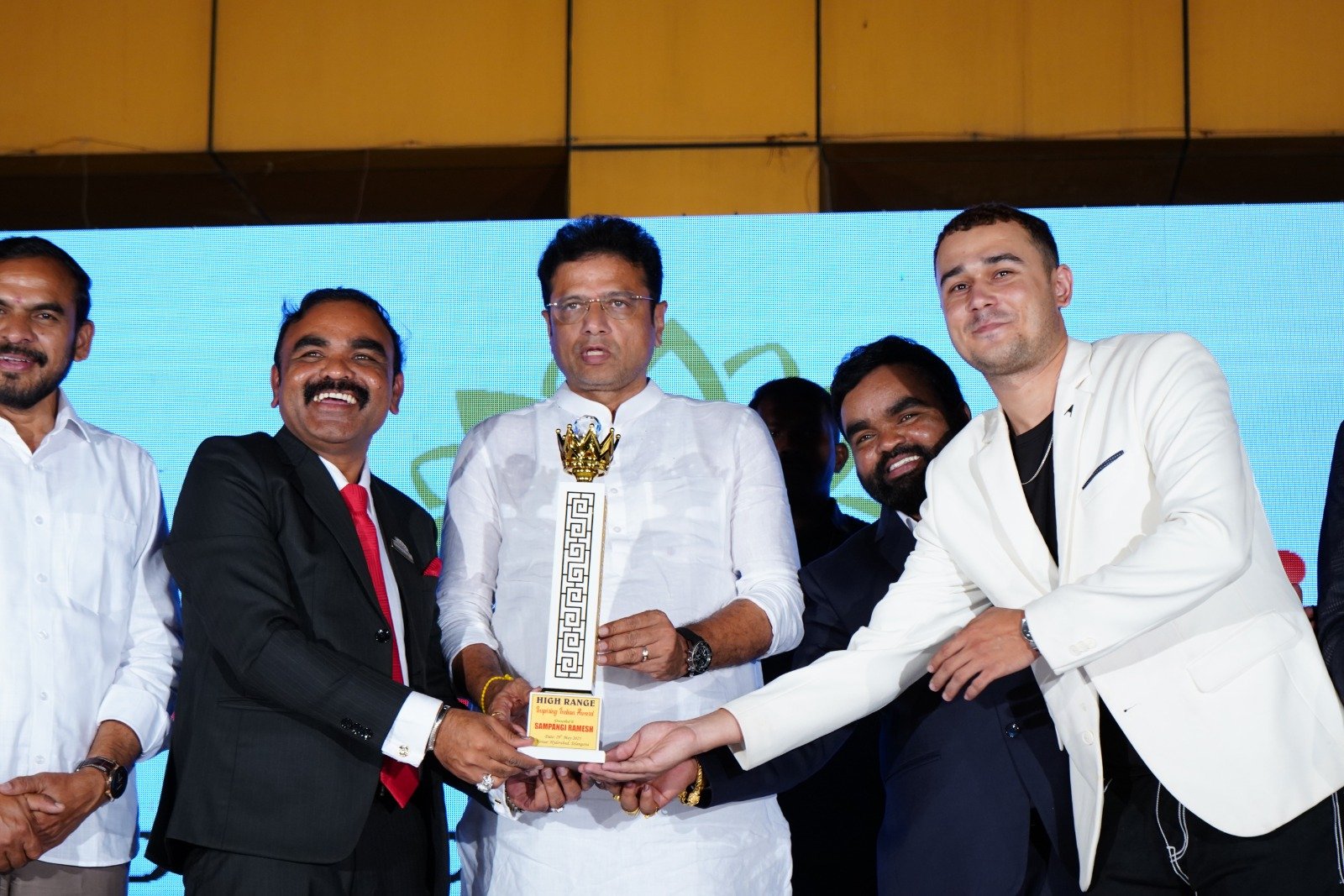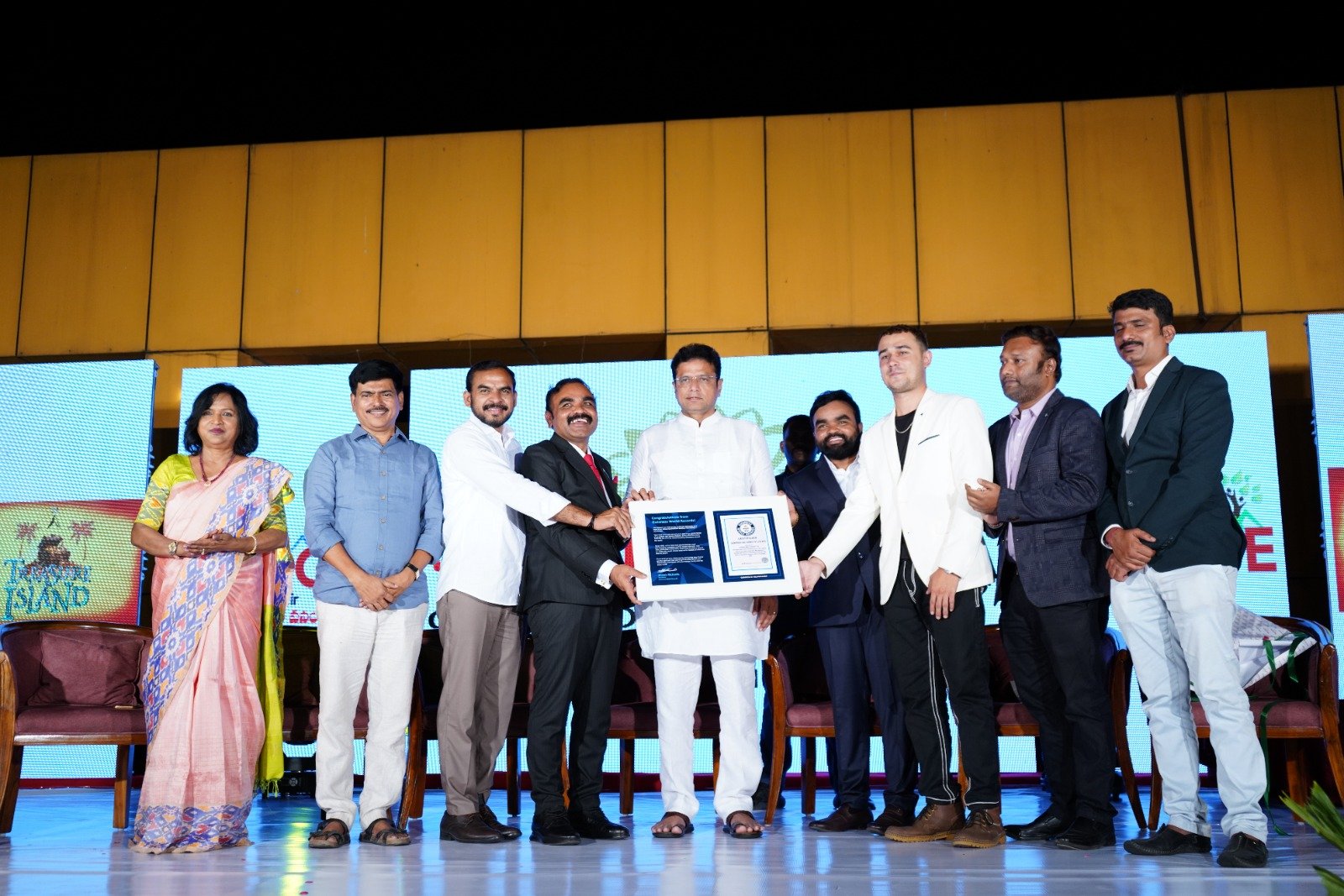At a special event held in Hyderabad, Telangana Minister Duddilla Sridhar Babu attended as the chief guest and, in the presence of Guinness Book representatives, presented the Guinness World Record certificate to the Sampanghi Group. On this occasion, the minister praised Dr. Ramesh Sampanghi and Suresh Sampanghi for their visionary leadership and commended their dedicated service to society.